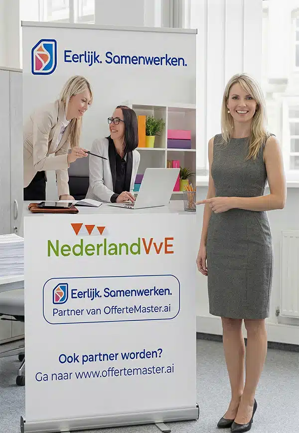 Nederlandvve.nl is het kennisplatform dat VvE’s helpt om beter geïnformeerde keuzes te maken. Dat doen we met artikelen, nieuws, praktische inzichten en een netwerk van partijen die actief zijn binnen de VvE-markt. Met onze nieuwe samenwerking met OfferteMaster.ai zetten we daarin een volgende stap. Een ontwikkeling waar we enthousiast over zijn, omdat we hiermee weer iets toevoegen waar in de praktijk veel behoefte aan is: sneller en beter inzicht in VvE-offertes.