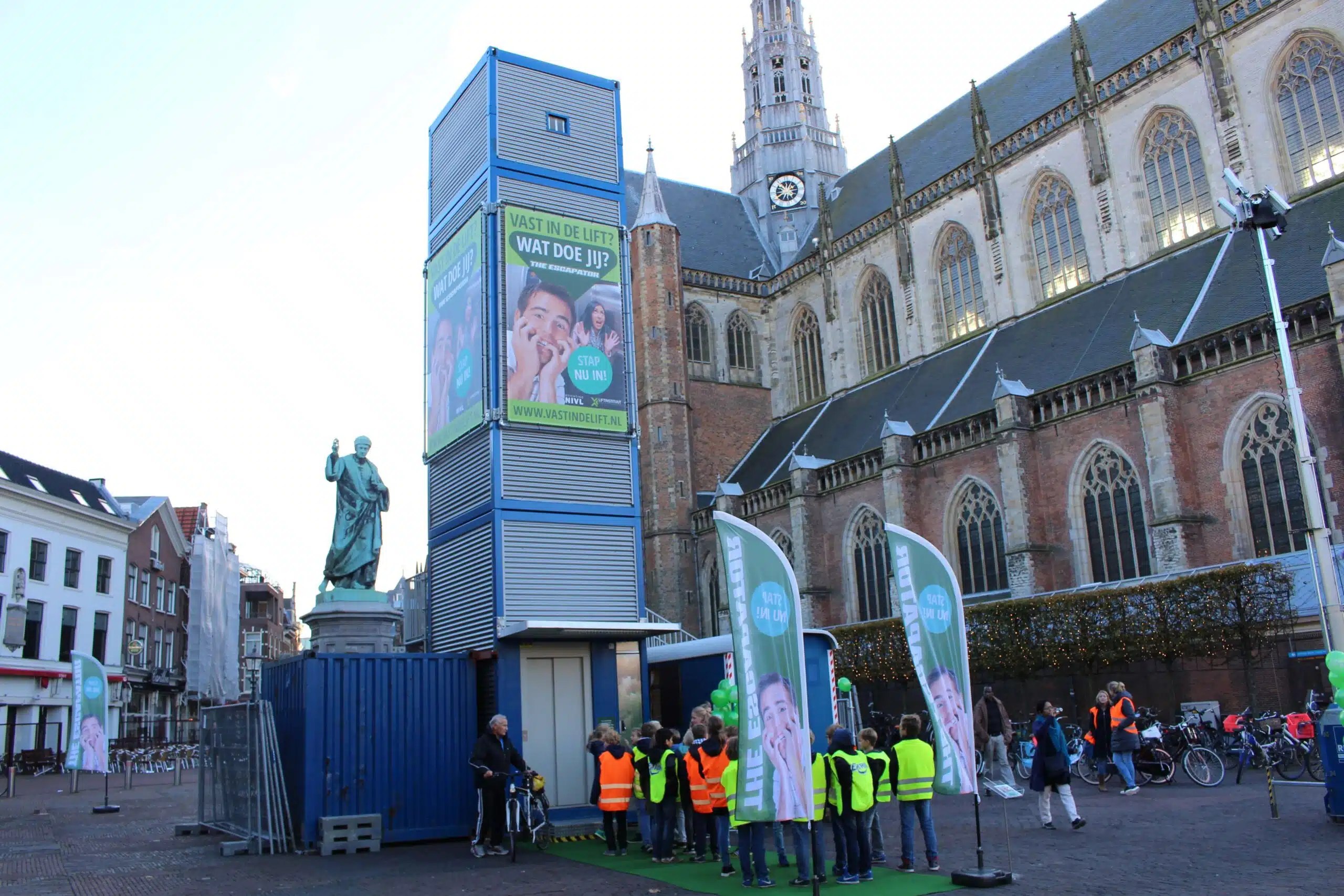 Tijdens de Week van de Veilige Lift stond The Escapator, een lift van 12 meter hoog, midden op de Grote Markt in Haarlem. Kinderen én volwassenen slaken een angstkreet als de lift halverwege wordt vastgezet. Wat nu? Het antwoord op deze vraag is de boodschap die tijdens de campagneweek centraal stond: “Blijf rustig, druk op de alarmknop of bel de storingsdienst, en bevrijd nóóit jezelf!”. Maar weten VvE-leden en VvE-bestuurders wel wat ze moeten doen?