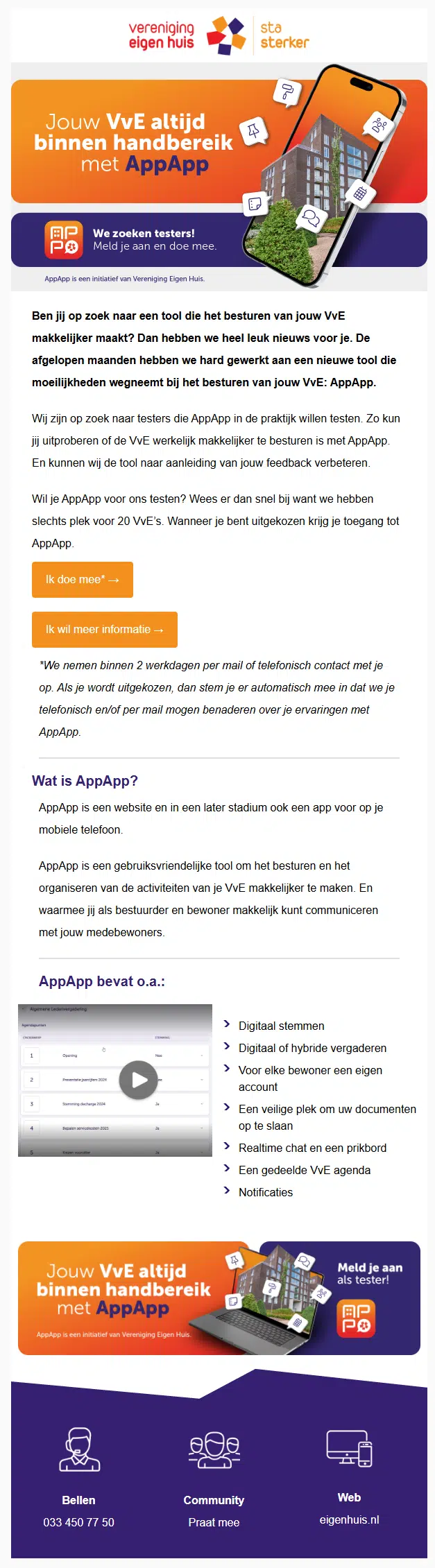 - VvE.nl/app: Een gebruiksvriendelijke app voor administratie en documentbeheer.